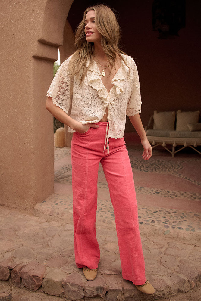 Live boldly in the Stevie Cord Pant, made with 99% organic cotton and a hint of elastane for comfortable stretch. These high-waisted pants feature a flare leg and exposed button fly. Complete with front pockets and spell buttons, these desert rose pants are perfect for your next adventure.