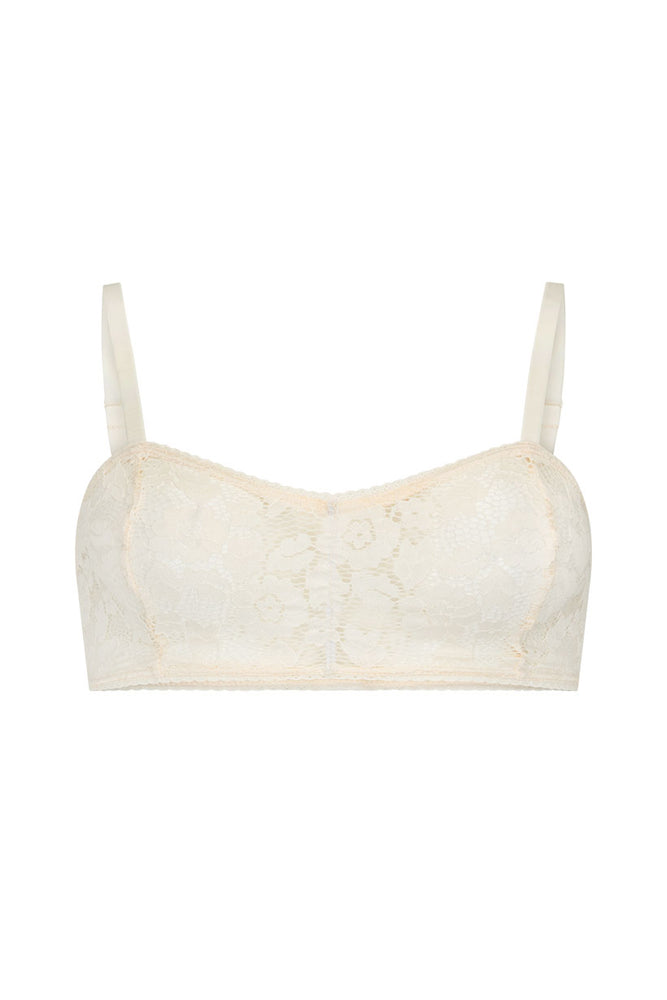 The Lux Lisbon Lace Bralette in Vintage Cream is a delicate and versatile piece that will add a touch of vintage glam to any outfit. Made from custom Spell Lace and featuring intricate lace trim on the neck and underbust, this bralette is perfect for layering under Spell blouses. Adjustable straps provide a comfortable and flattering fit.