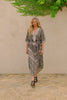 The Little Bird Flutter Maxi Dress in Midnight is a dreamy ode to bohemian sophistication. Crafted from a luxe blend of organic cotton, LENZING™ ECOVERO™ viscose, and a touch of metallic, this dress shimmers with effortless elegance. The asymmetrical hemline and flowing silhouette evoke a carefree spirit, while intricate details like the allover print and bordered accents on the neckline, sleeve hems, and skirt add a touch of artistry.