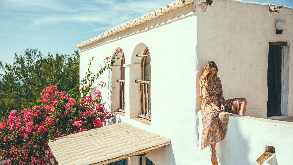 My friend and I {Nina, you know who you are} would often peer through their window, from our 2nd story apartment lookout. It sounds much more creepy than it actually was, but we both couldn’t help dreamily look at Vanessa, living her best Bondi life because she was just so beautiful!! When I see her life in Ibiza I often think how incredibly effortless, gorgeous and wonderful she was even back then in a beachside flat in Bondi. It’s been delightful reconnecting with her from afar through the Spell lens, and seeing her transition to motherhood at similar times to me and her decision to take to the hills of Ibiza for this wonderful life. I think this leads so much into what the story of Fable is ~ an embrace of the slow pace of life, of creating. A feeling of breeziness and free. Choosing calm. Vanessa embodies all of this.