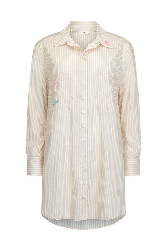 <p>Classic Shirt Shape<br>Customised Embroidery on Pocket and Collar&nbsp;<br>Chest Pockets<br>Side Pockets&nbsp;<br>Button Closure at Front&nbsp;</p>