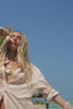 The Horizon Shirt in White Sands is a timeless wardrobe staple infused with effortless charm. Crafted from 100% organic cotton, this classic shirt silhouette is soft, breathable, and perfect for layering or wearing on its own. Delicate custom embroidery on the pocket and collar adds a touch of thoughtful artistry, while functional chest and side pockets bring practicality to this elegant design. Finished with a button-up front, this piece combines versatility with style.